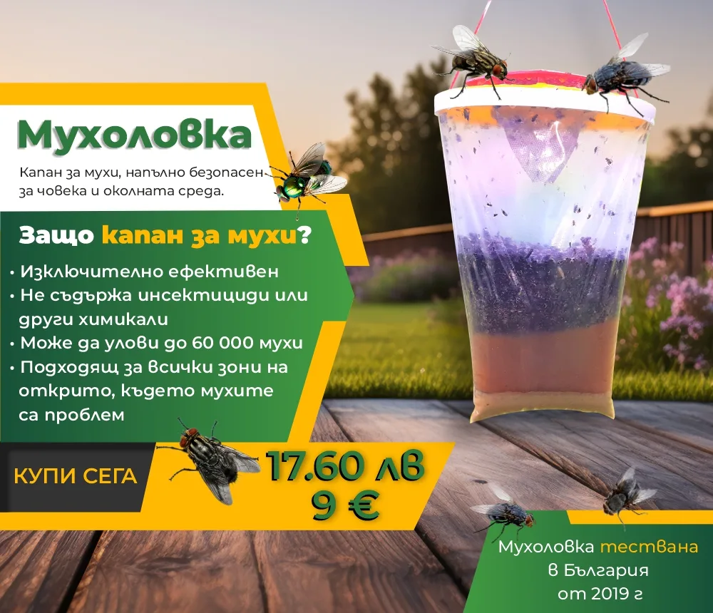 След като мухите влезнат в капана привличат и другите мухи. Така ефектът се усилва.